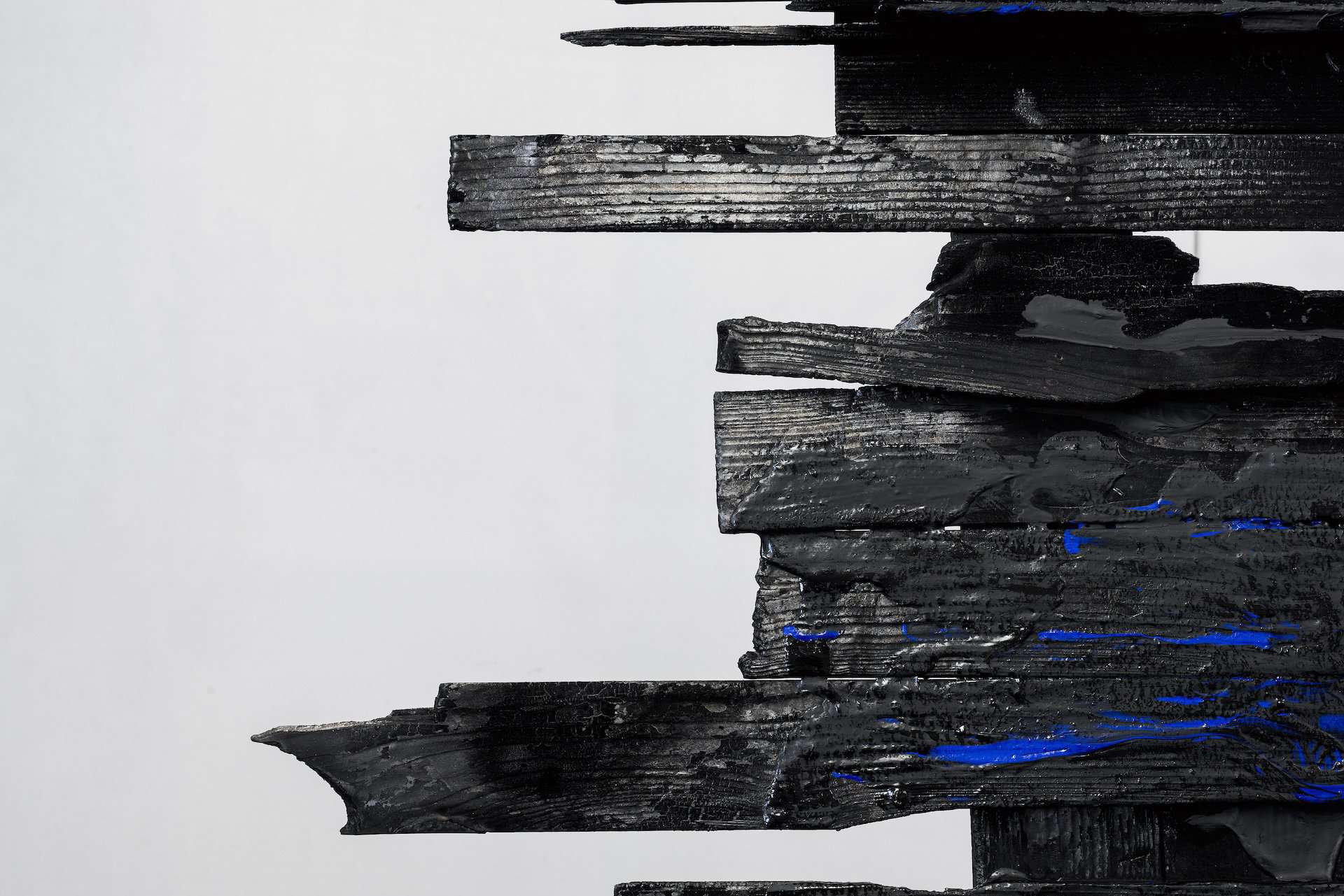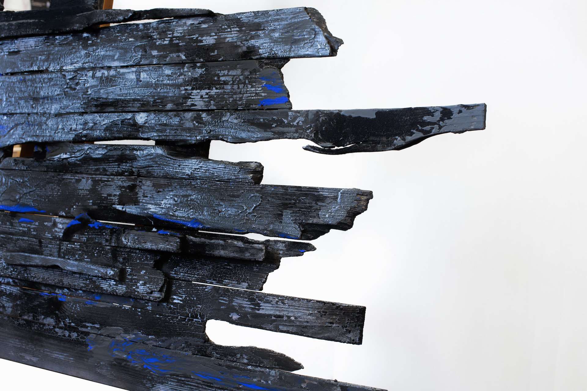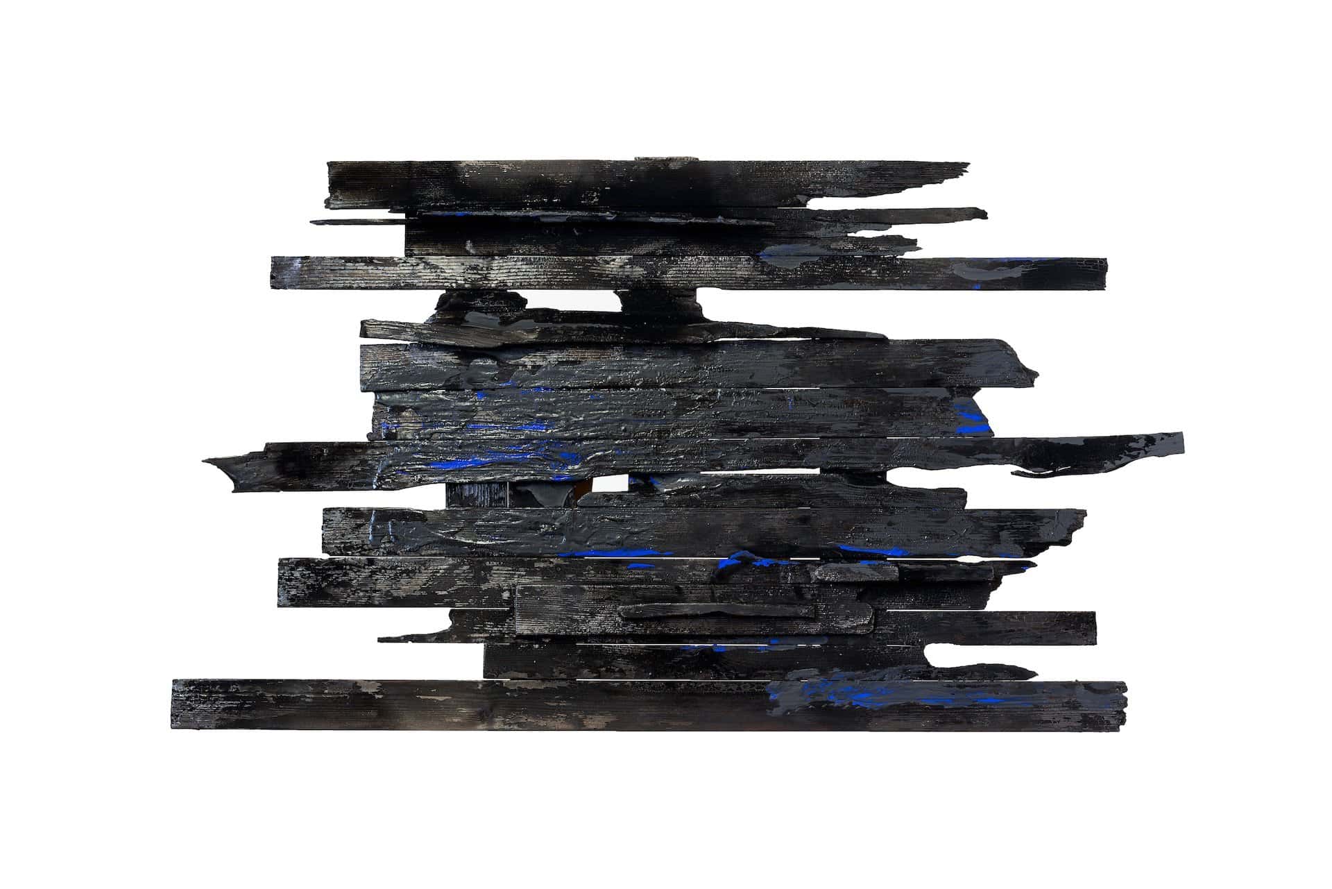 scultura, legno carbonizzato, chiodi, acrilico, cm 80x135x2,5, 2022