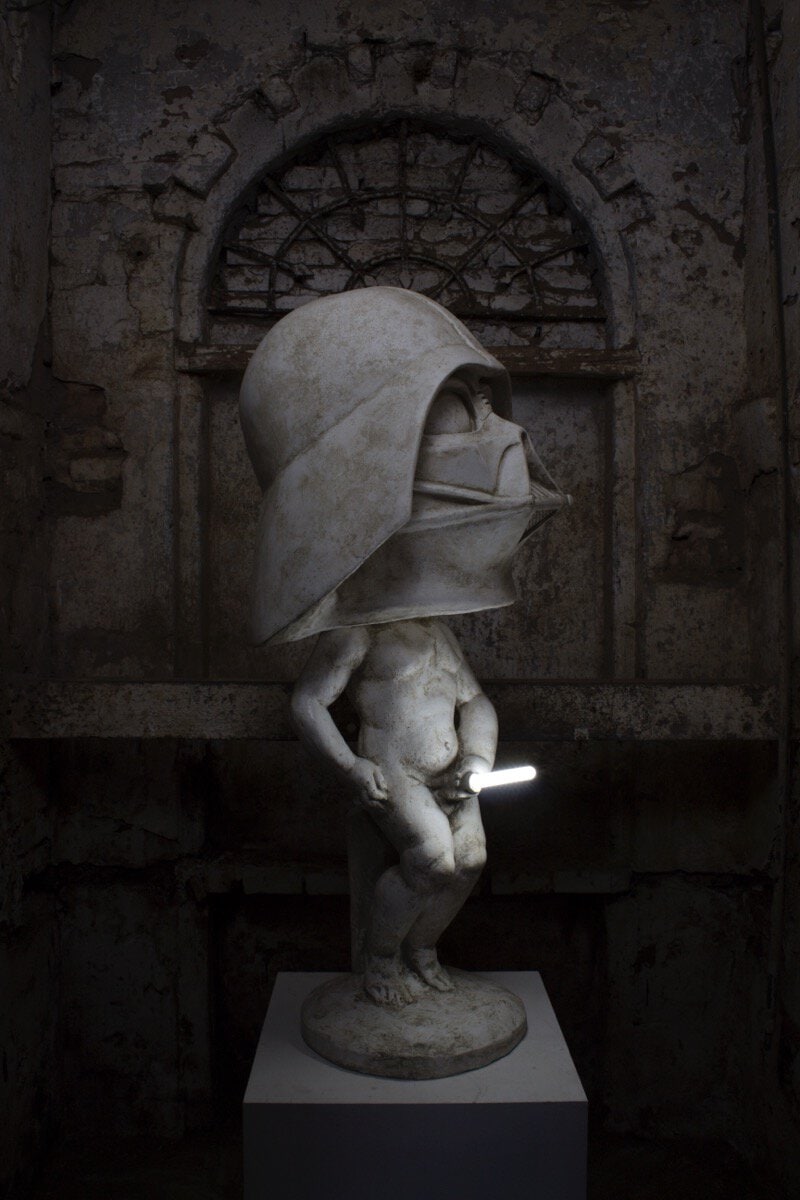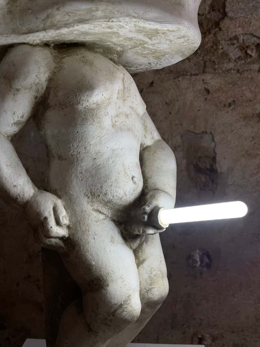 scultura tecnica mista e led luminoso, cm 100x42x44, 2021