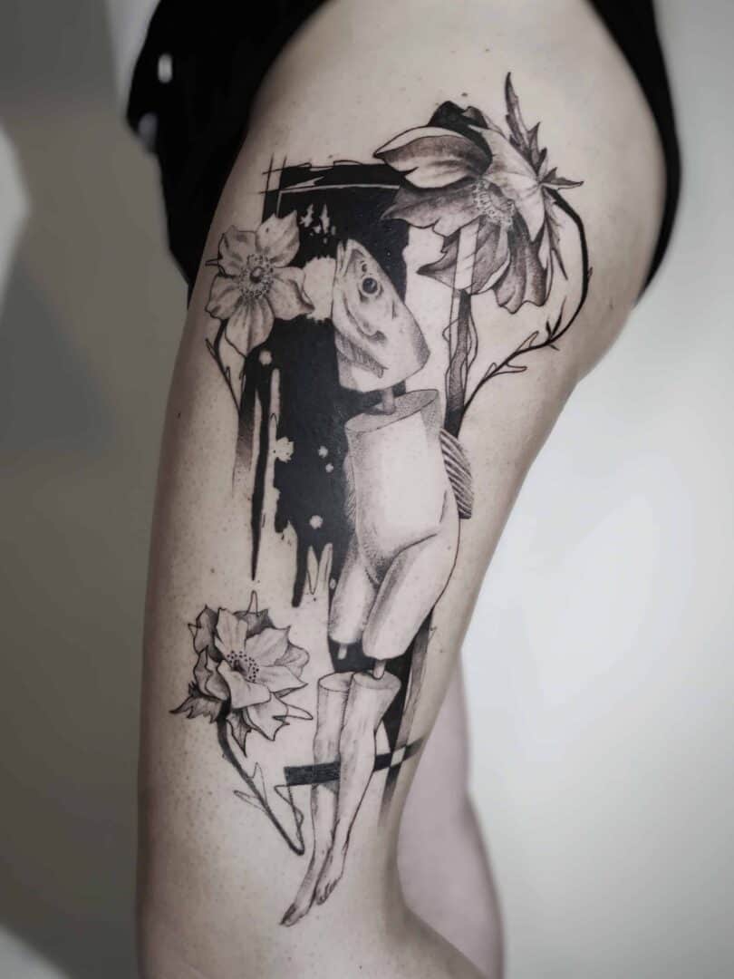 Nel 2020 l’artista espande il proprio repertorio sperimentando l’arte del tatuaggio, per esplorare e trasferire su pelle il suo distintivo stile pittorico punto il suo obiettivo è quello di estrarre il mondo interiore è fantastico di ognuno, utilizzando l’arte come potente strumento di introspezione e specchio dell’anima.